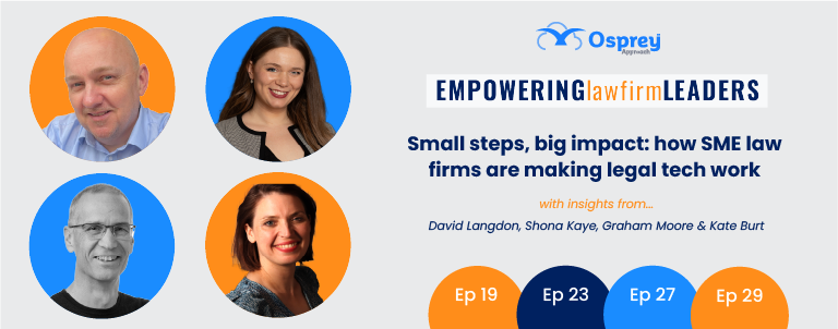 To explore these themes, Osprey Approach has drawn insights from several episodes of its Empowering Law Firm Leaders podcast series. Across these conversations, law firm leaders and experts share practical advice on how SME law firms can make legal technology work effectively and reap long term benefits.