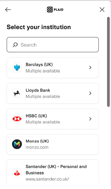 We are an agent of Plaid, who powers this integration. You can connect your current account via Plaid, who provides account information services (AIS) securely through us as their agent.