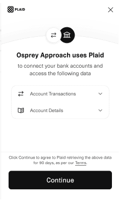 Once linked, Plaid pulls in data from your firm and client accounts in real time. You can view balances, transactions, and payment history directly within Osprey Approach without manual entry.