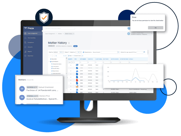 Legal matter management software is used by law firms to help organise and effectively manage their matters and clients. This includes everything from form and document production to time recording, billing, client management, and reporting. Matter management software centralises and connects all your data, documents and files into one centralised platform to help with compliance, improving efficiencies, and delivering quality client service.