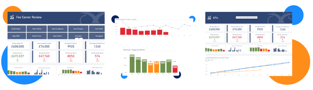 Start instantly with ready-made dashboards designed specifically for legal workflows. View period-end financials, cost analysis, client trends, compliance activity, productivity metrics, and more — all configured for UK law firms.
